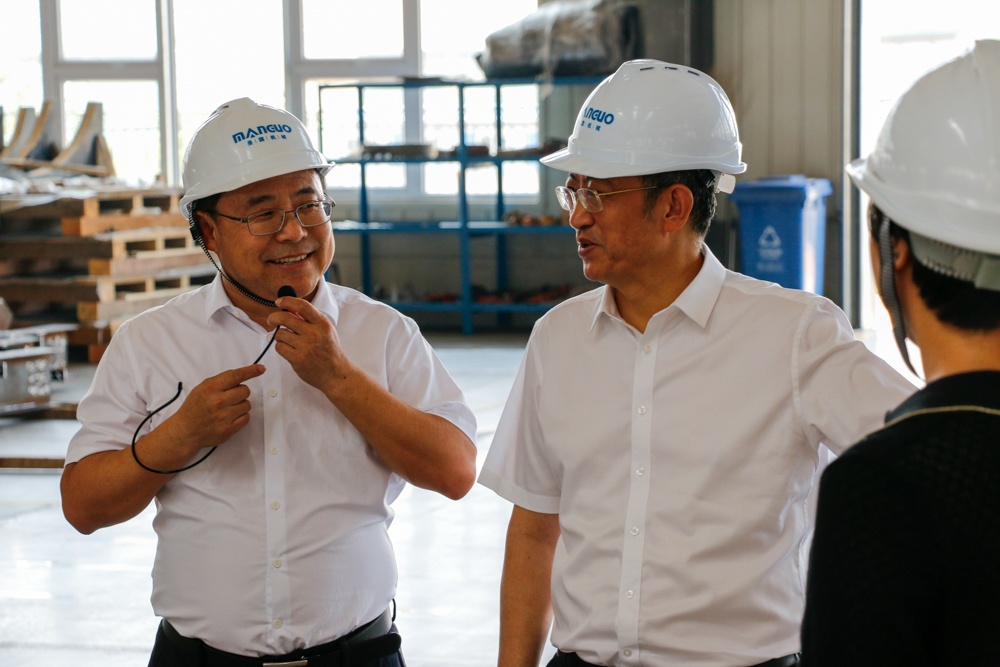 2023年8月17日,秦皇島市市長、黨組書記丁偉,副市長郭建平帶領(lǐng)市、區(qū)領(lǐng)導團隊,蒞臨秦皇島曼國裝備科技有限公司調(diào)研指導工作。08-17